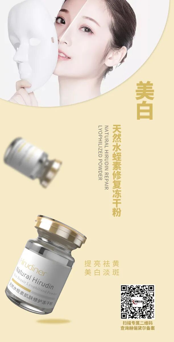 对于肌肤暗沉、发黄、肤色不均等问题,天然水蛭素能提高血液流动性,疏通血管,促进皮肤循环,改善皮肤代谢,使色素逐渐消散。此外,天然水蛭素对细胞内黑色素的生长具有一定的抑制能力,黑色素减少,皮肤变白不止一个度。